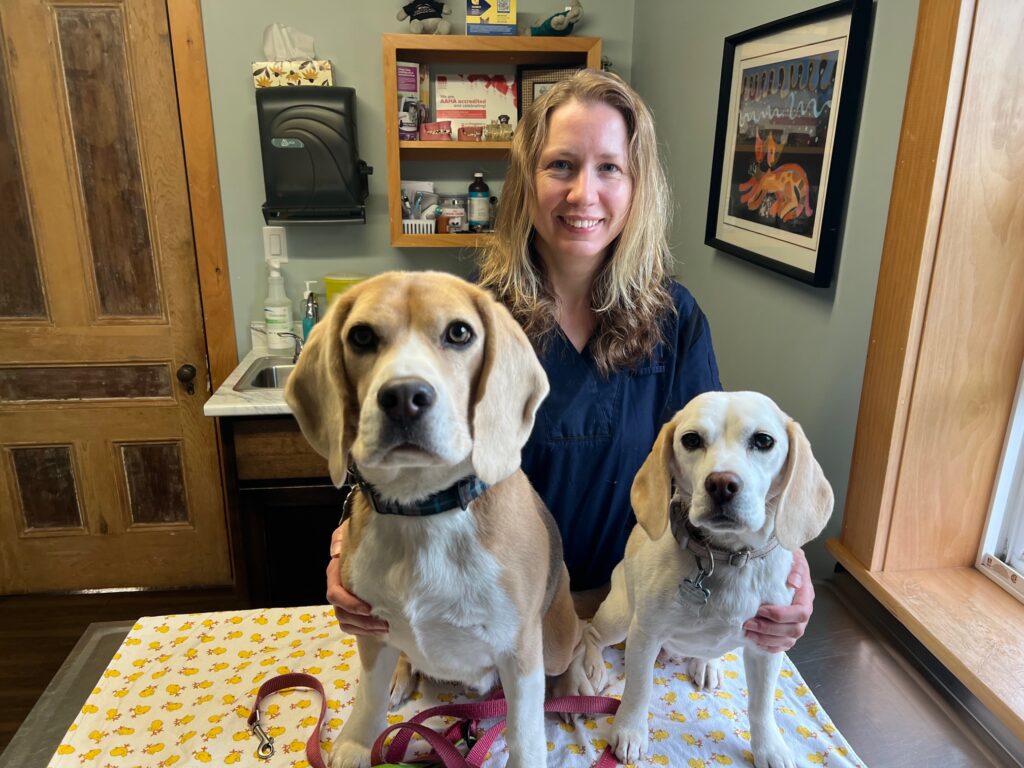 Dr. Jen lives with her spouse, young son, and two energetic Beagles, Helo and Briar. Outside of the clinic, she enjoys hiking and camping, travelling, reading, and gardening.